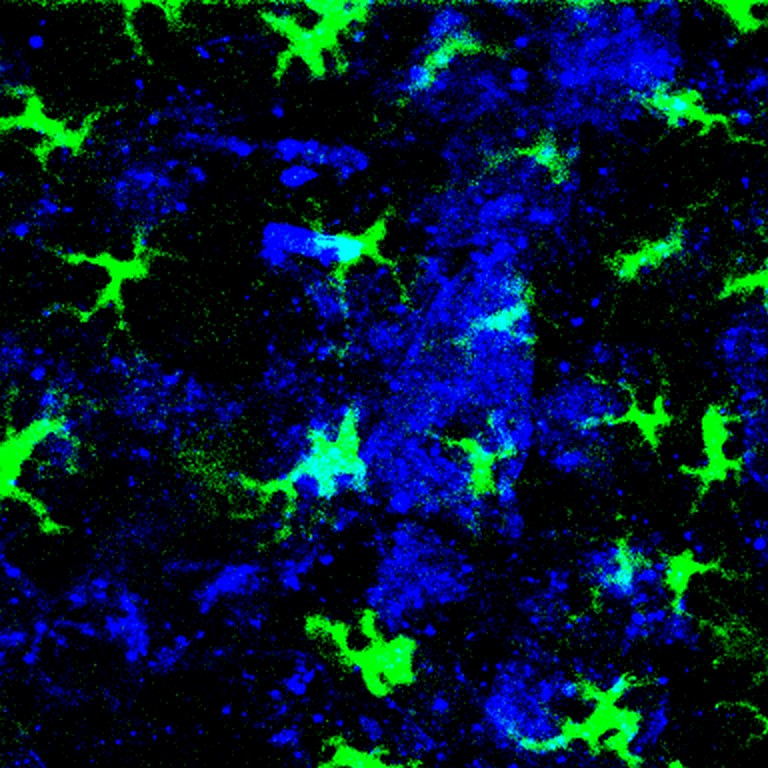 “Delivery of Vaccine-Containing Particles to the Skin,” Hammond and Irvine Laboratories, Koch Institute Image Awards submission, 2012. Nanoparticles (blue) bearing vaccines engage antigen presenting dendritic cells (green), the first step in creating vaccine-mediated immunity. Koch Institute spinout Elicio Therapeutics is now translating work on these therapeutic vaccines. In Phase 2 trials, their vaccine against KRAS-mutated tumors induced immune responses in 99% of evaluable pancreatic cancer patients, with 88% responding to their own tumor-specific mutation.